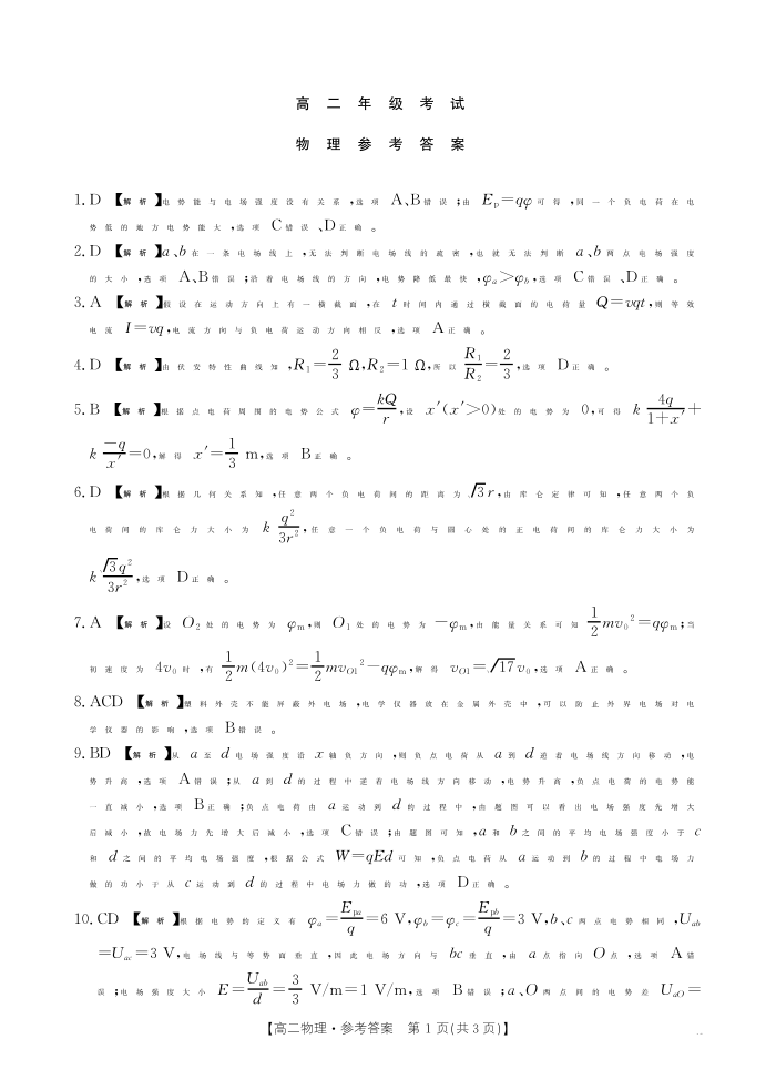 陕西省2027届高二年级10月月考 物理答案.pdf