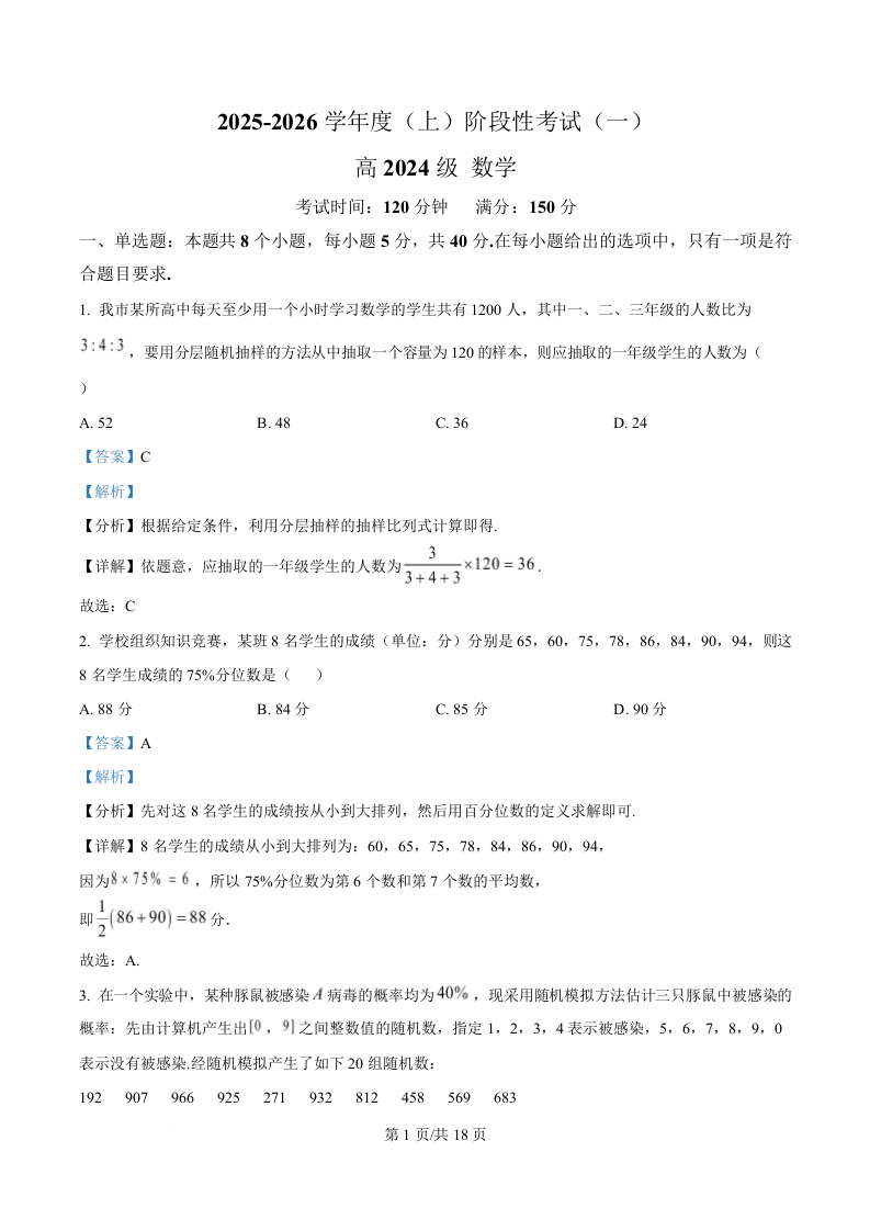 四川省成都市列五中学2025-2026学年高二上学期阶段性考试(一)数学答案.docx