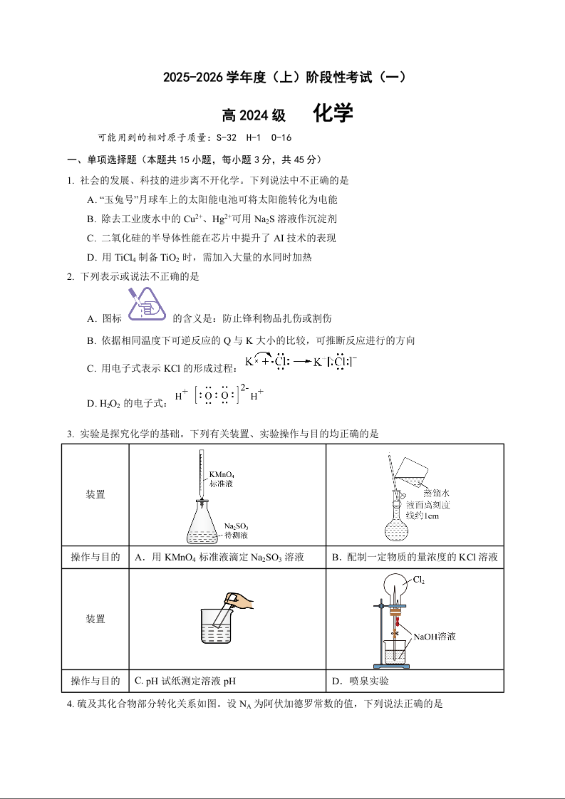 四川省成都市列五中学2025-2026学年高二上学期阶段性考试(一)化学.docx