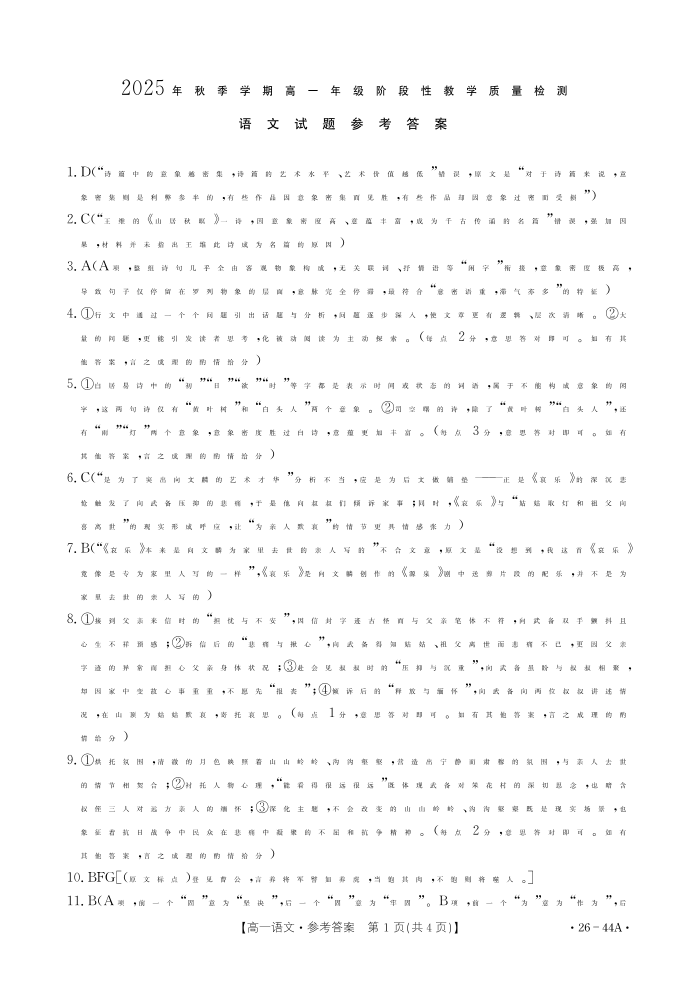 广西2025年秋季学期高一年级阶段性教学质量检测 语文答案.pdf