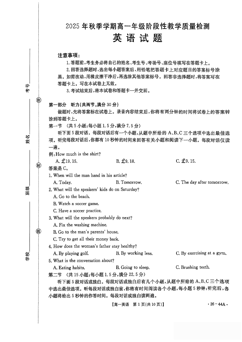 广西2025年秋季学期高一年级阶段性教学质量检测 英语.pdf