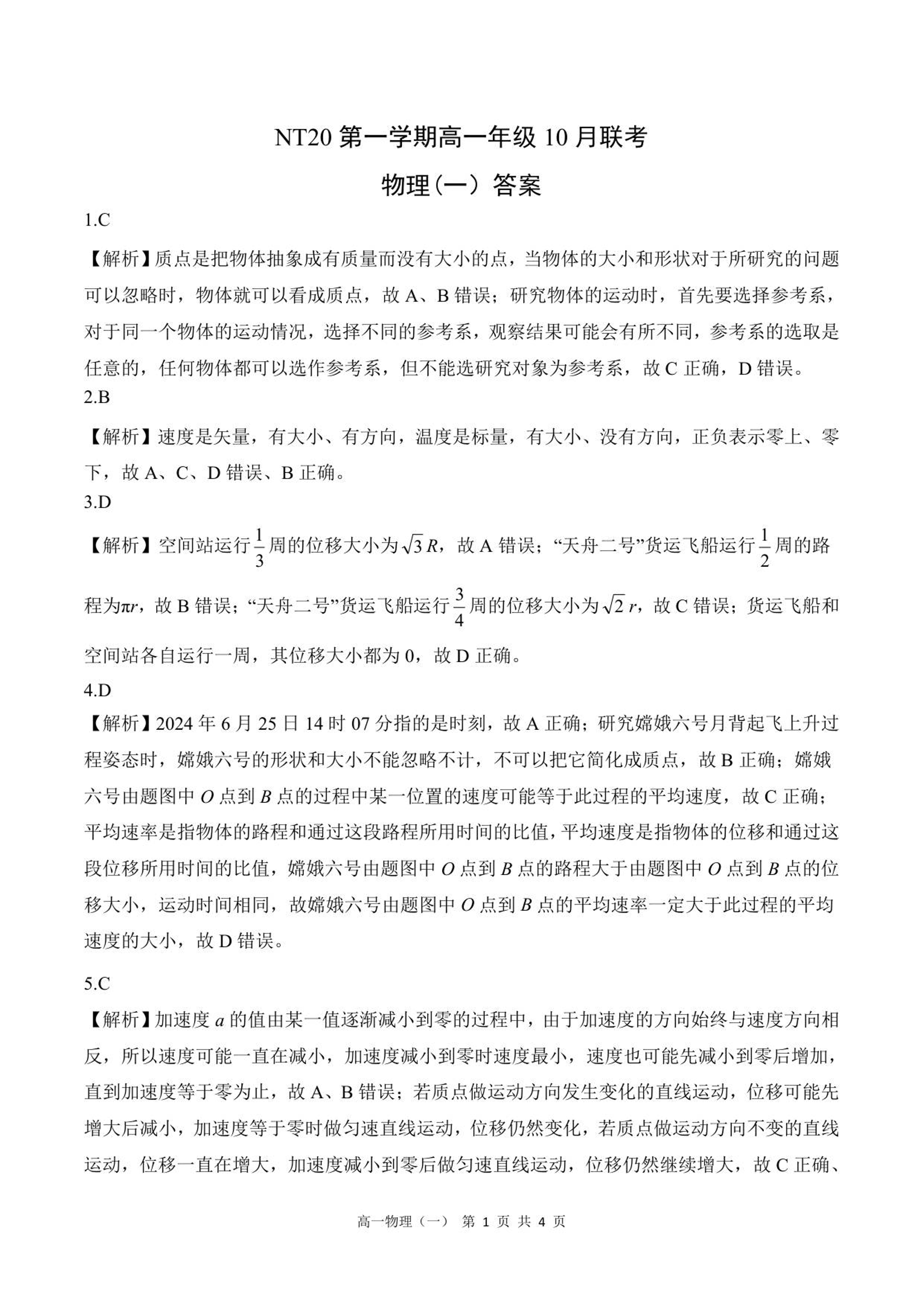 河北省NT20名校联合体2025-2026学年第一学期高一年级10月联考 物理答案.pdf