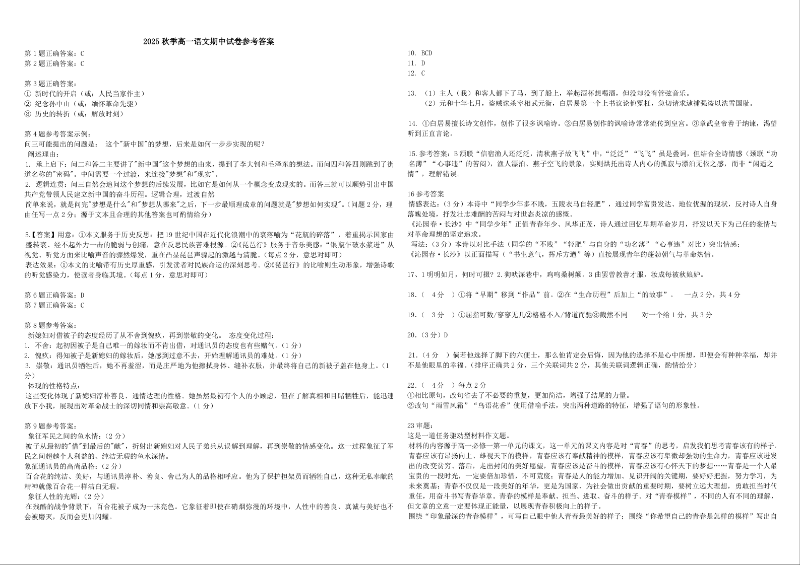 2025年秋季育才高级中学高一年级期中考试 语文.docx