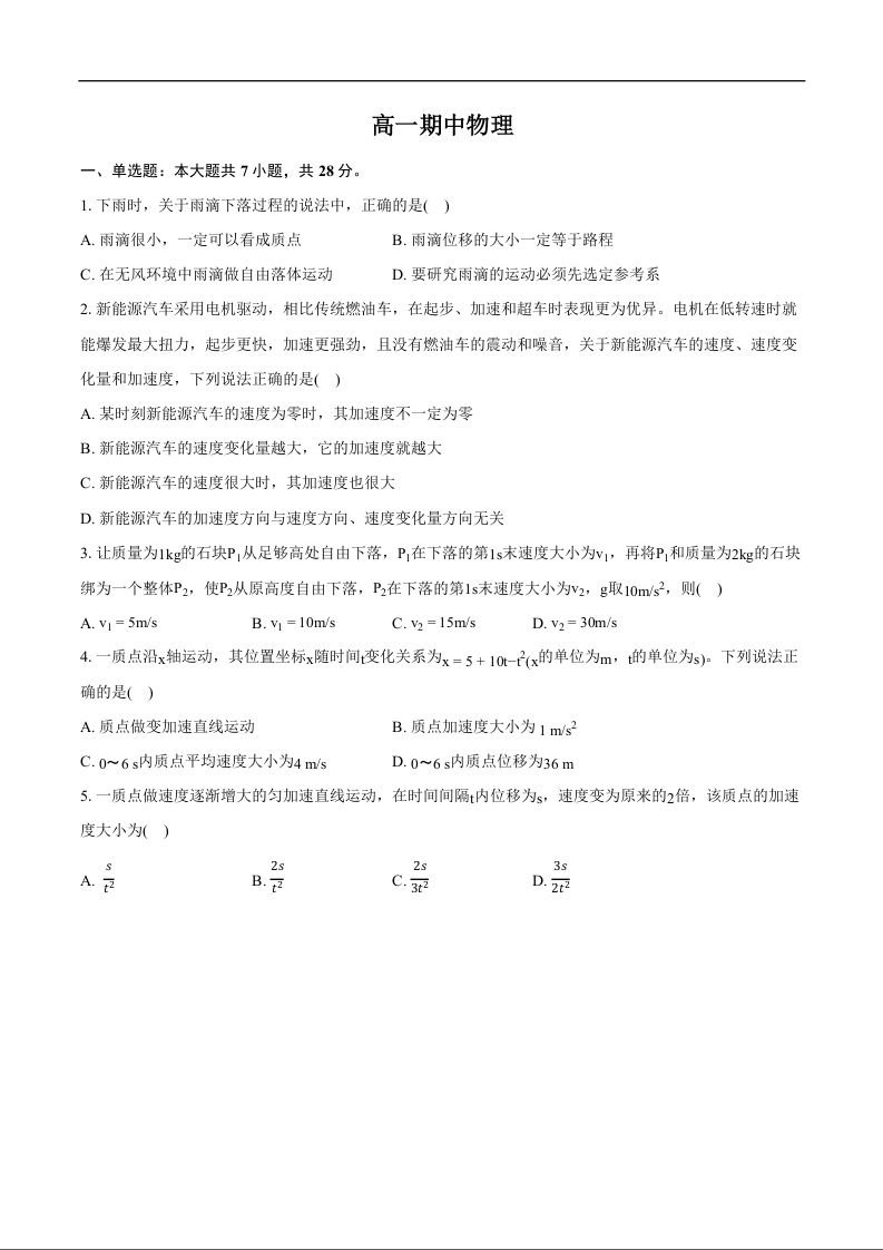 2025年秋季育才高级中学高一年级期中考试 物理(含答案).docx