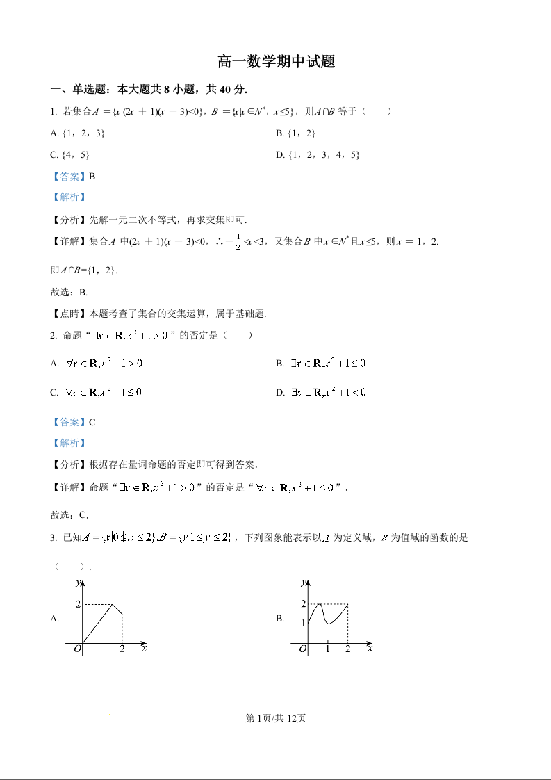 2025年秋季育才高级中学高一年级期中考试 数学答案.docx