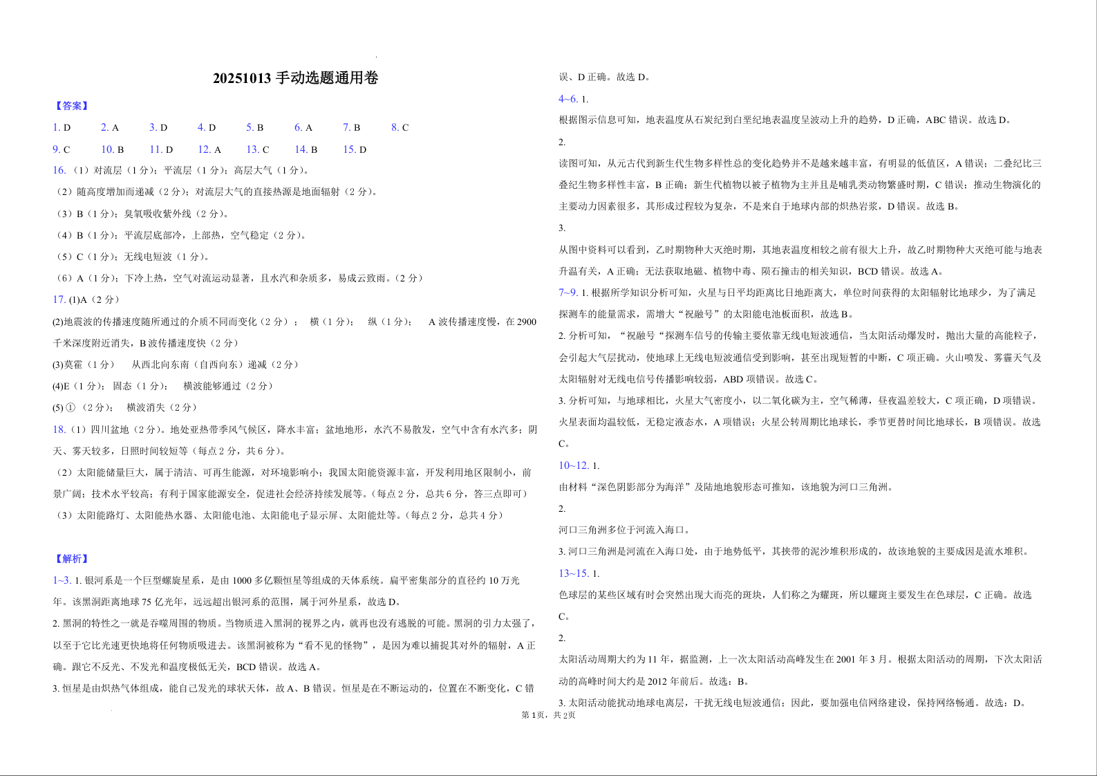 2025年秋季育才高级中学高一年级期中考试 地理答案.docx