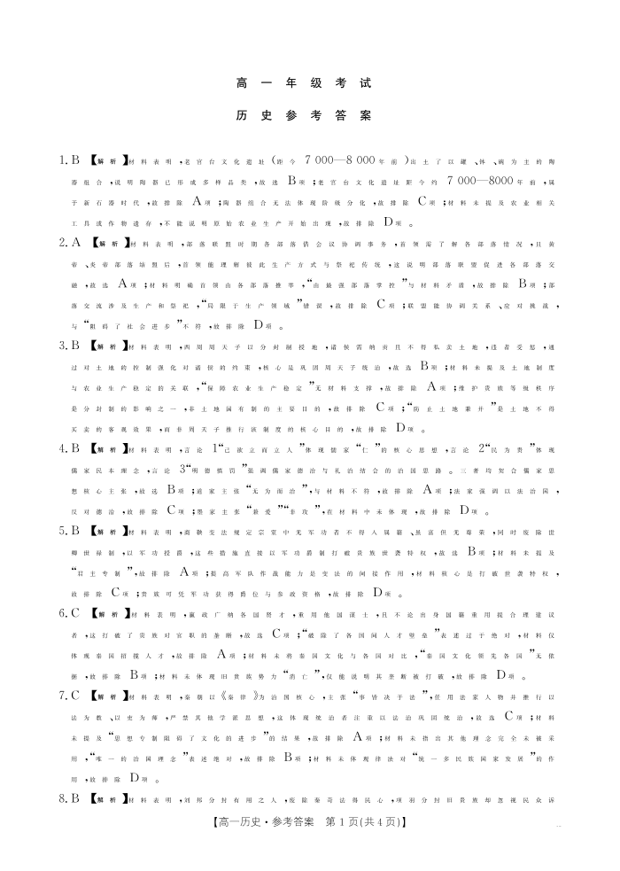 陕西省2028届高一年级10月月考 历史答案.pdf
