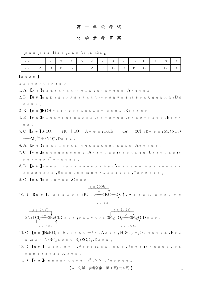 陕西省2028届高一年级10月月考 化学答案.pdf
