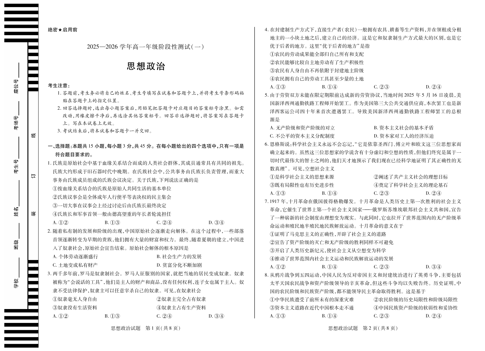 【政治】天一大联考·2025-2026学年高一年级阶段性测试(一).pdf