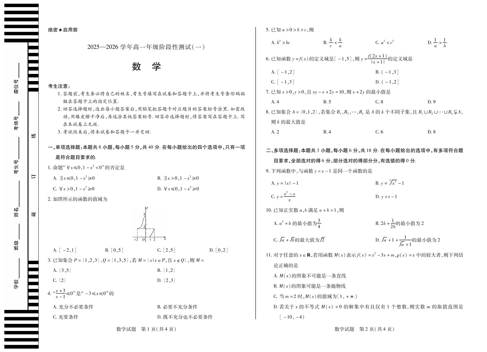 【数学】天一大联考·2025-2026学年高一年级阶段性测试(一).pdf