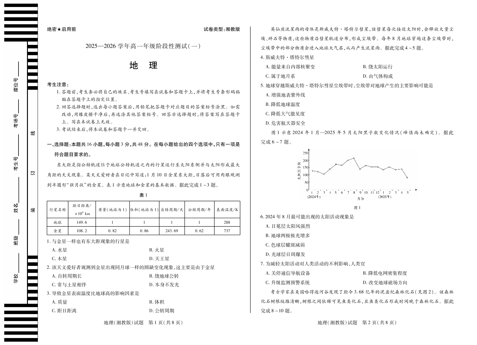 【地理 湘教版】天一大联考·2025-2026学年高一年级阶段性测试(一).pdf