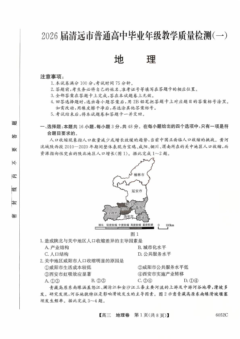 2026届清远市普通高中毕业年级教学质量检测(一)地理.pdf