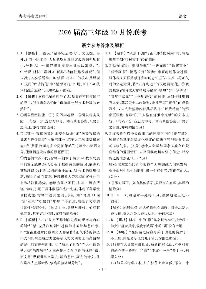 广东省衡水金卷2026届高三年级10月份联考 语文答案.pdf