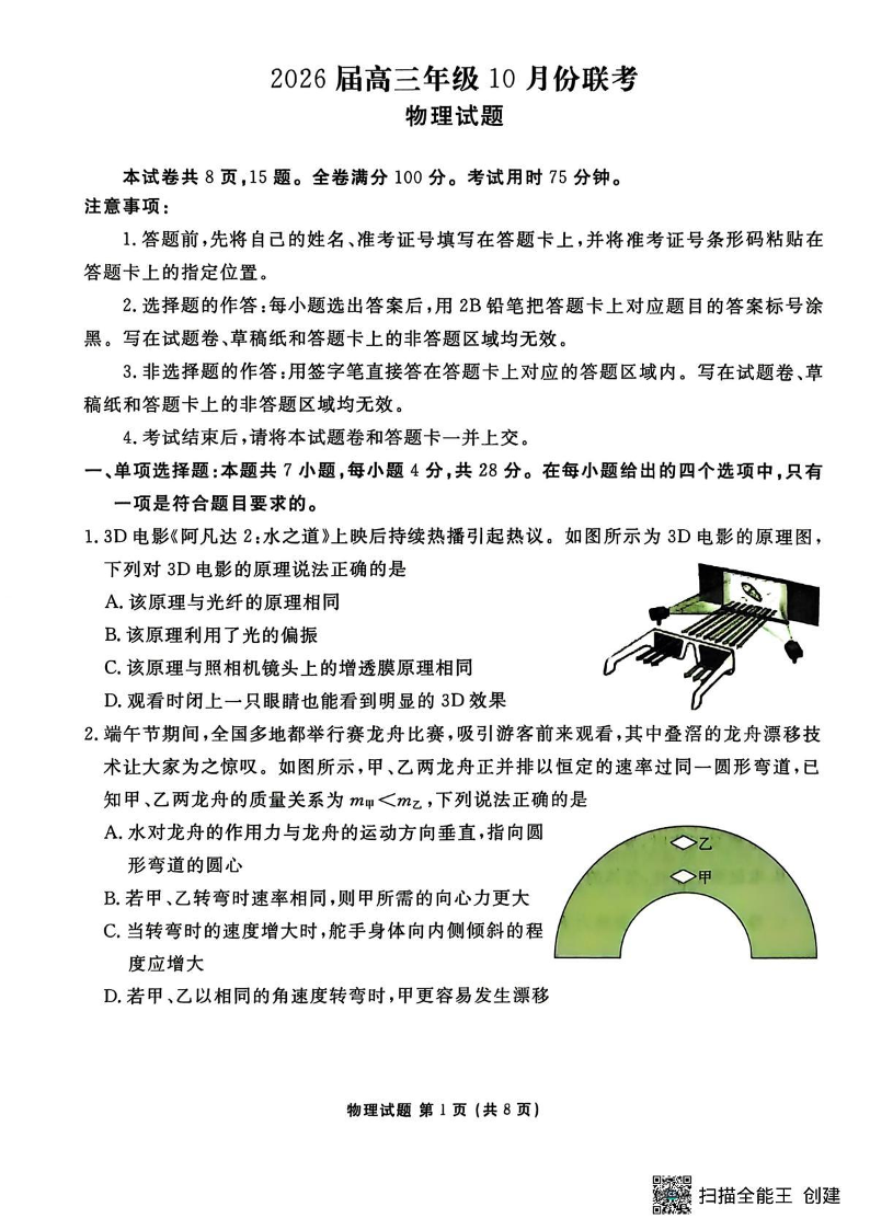 广东省衡水金卷2026届高三年级10月份联考 物理.pdf