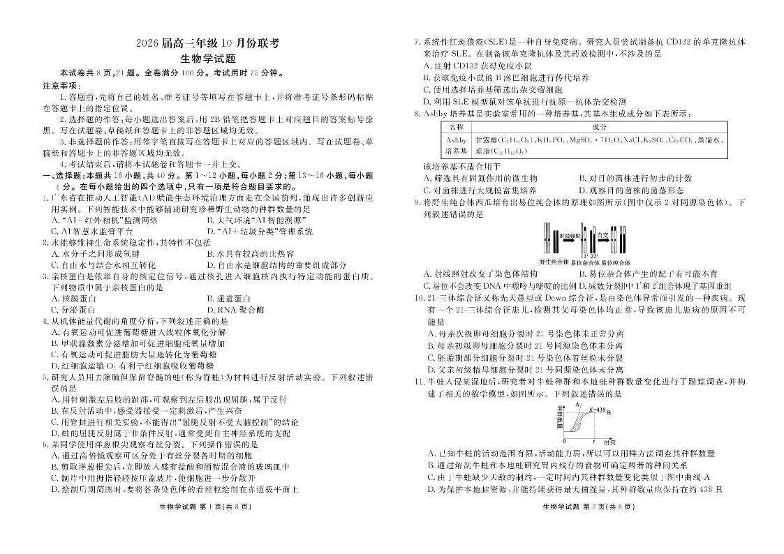 广东省衡水金卷2026届高三年级10月份联考 生物.pdf