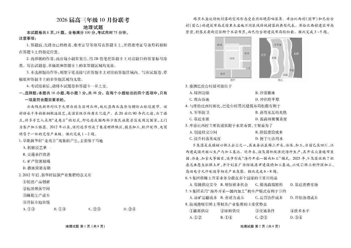广东省衡水金卷2026届高三年级10月份联考 地理.pdf