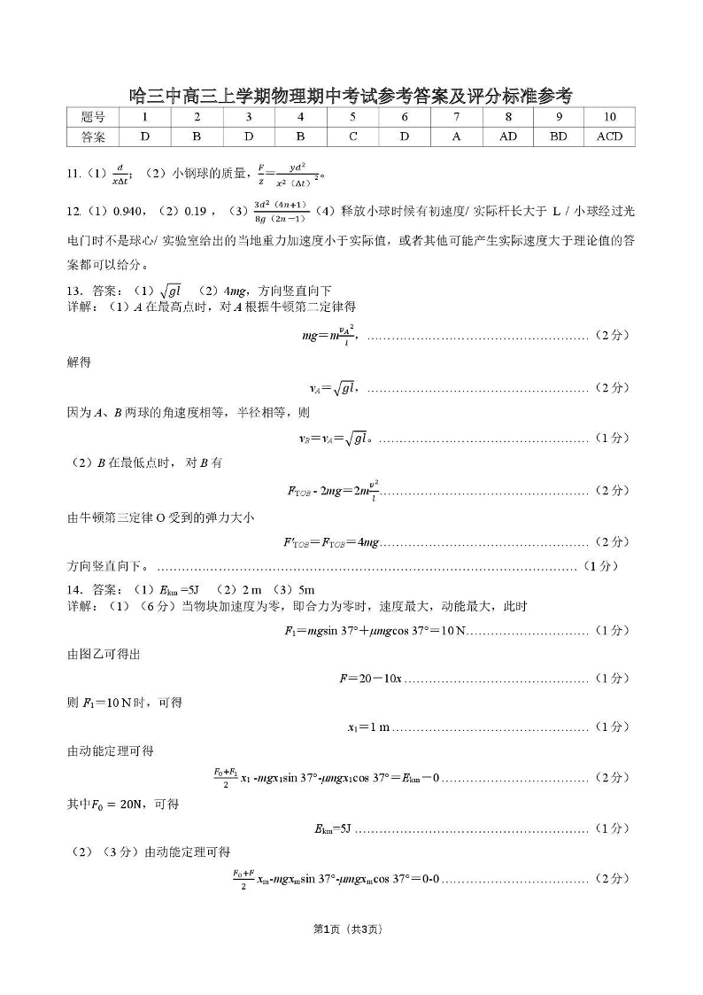 哈三中2025-2026学年度上学期高三学年期中考试 物理答案.pdf