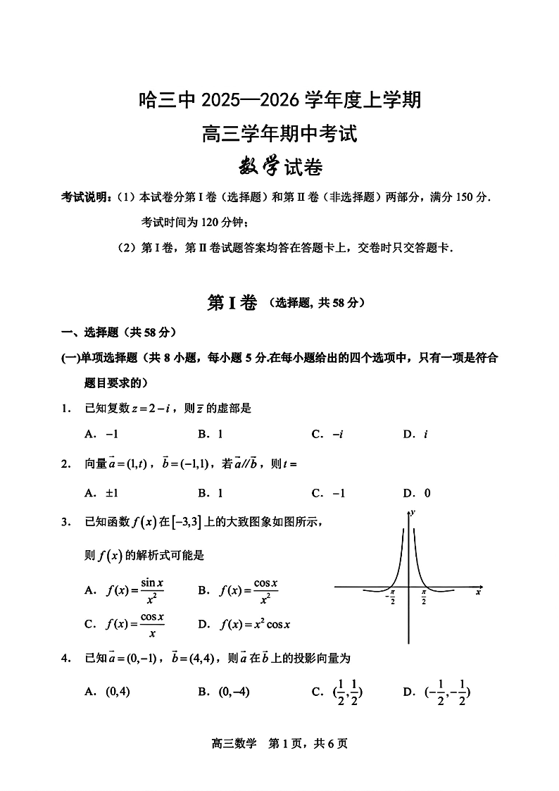 哈三中2025-2026学年度上学期高三学年期中考试 数学.pdf