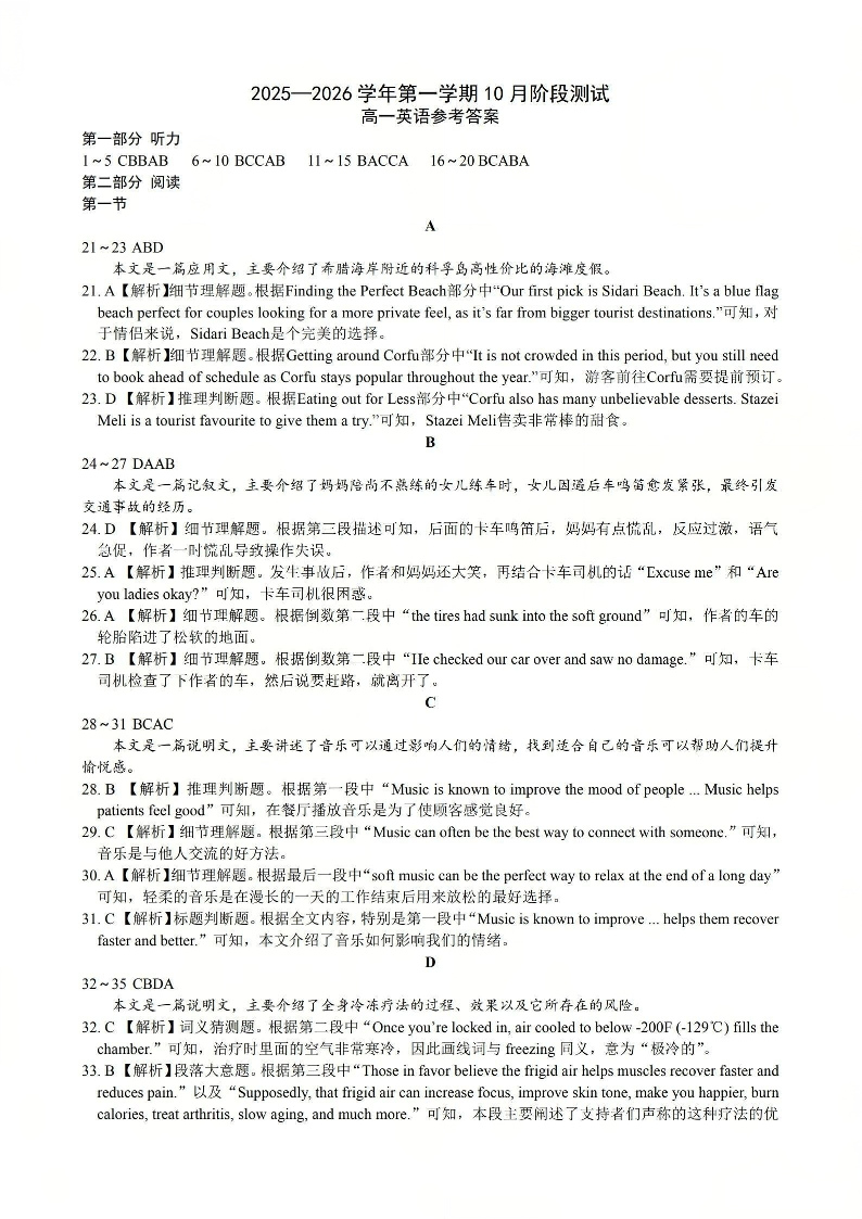 山西省2025-2026学年第一学期10月阶段测试 英语答案.pdf