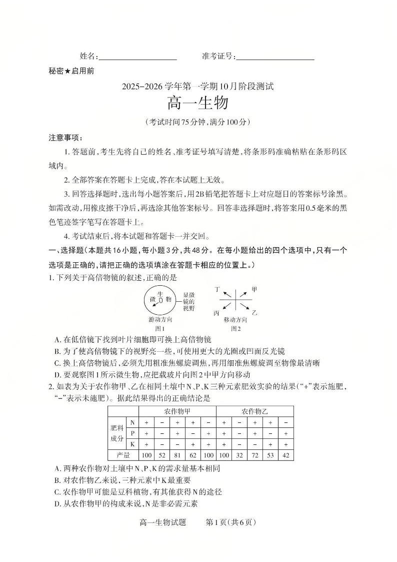山西省2025-2026学年第一学期10月阶段测试 生物.pdf