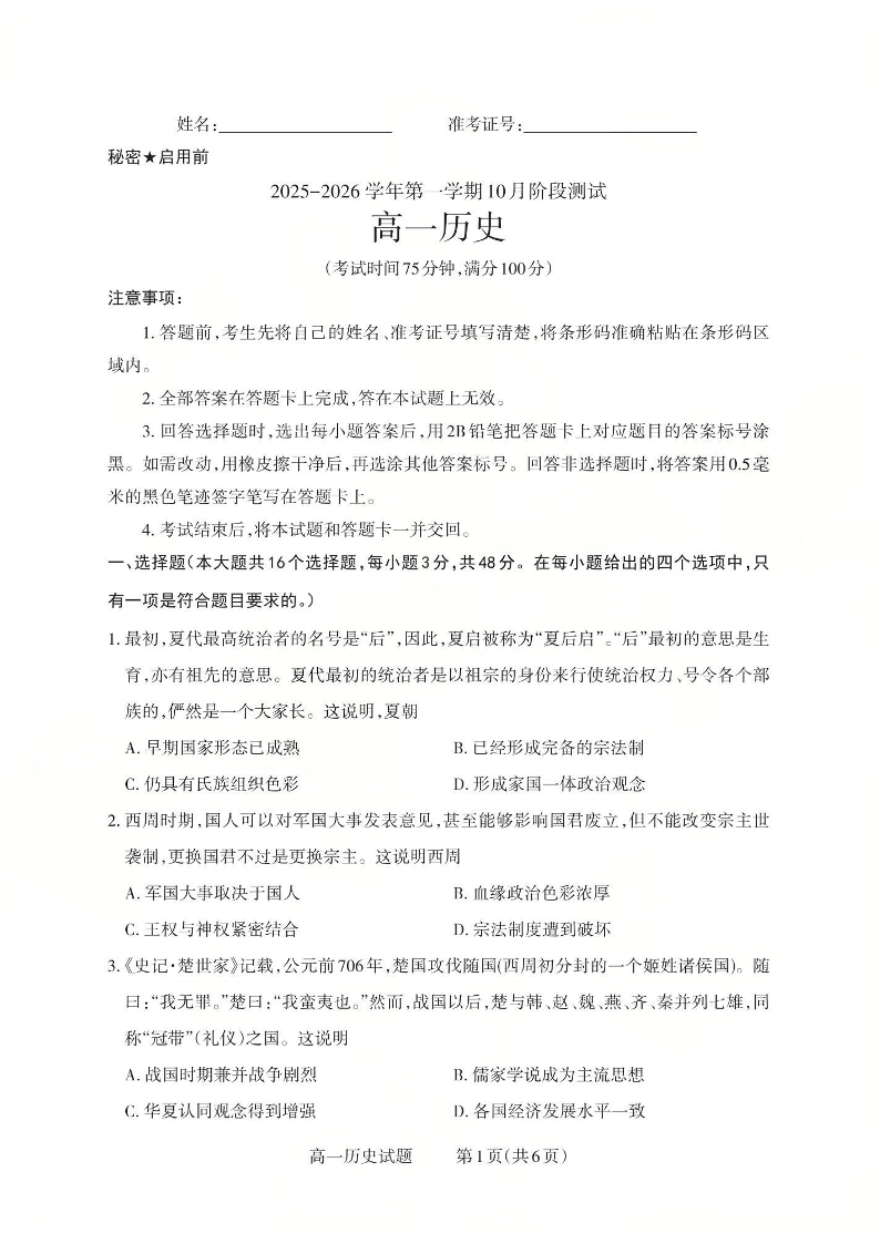 山西省2025-2026学年第一学期10月阶段测试 历史.pdf