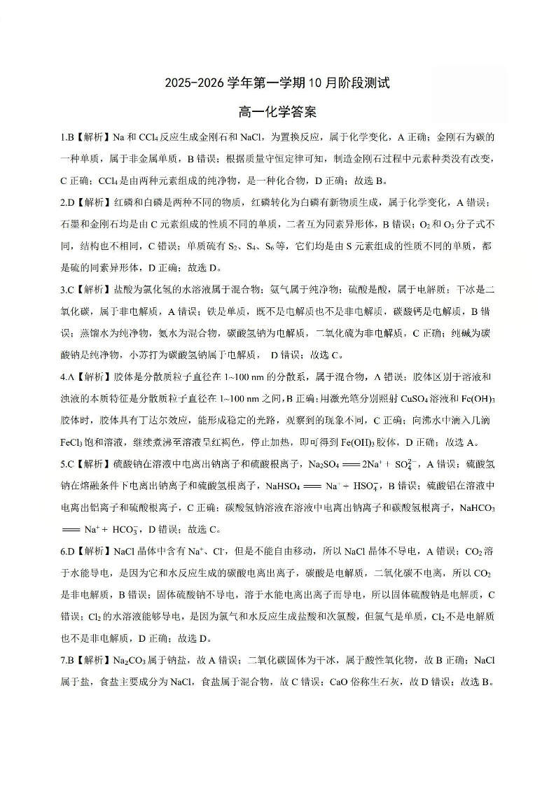山西省2025-2026学年第一学期10月阶段测试 化学答案.pdf