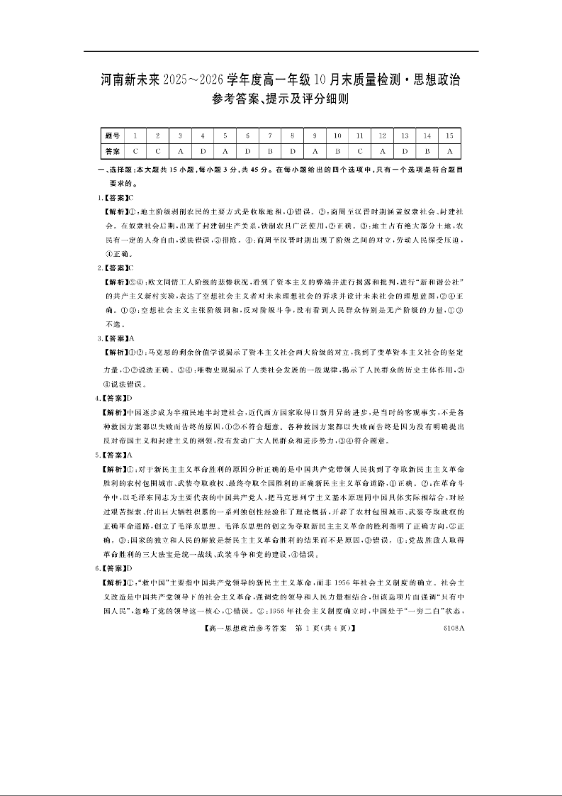 河南省新未来大联考2025-2026学年高一上学期10月末质量检测 政治答案.docx
