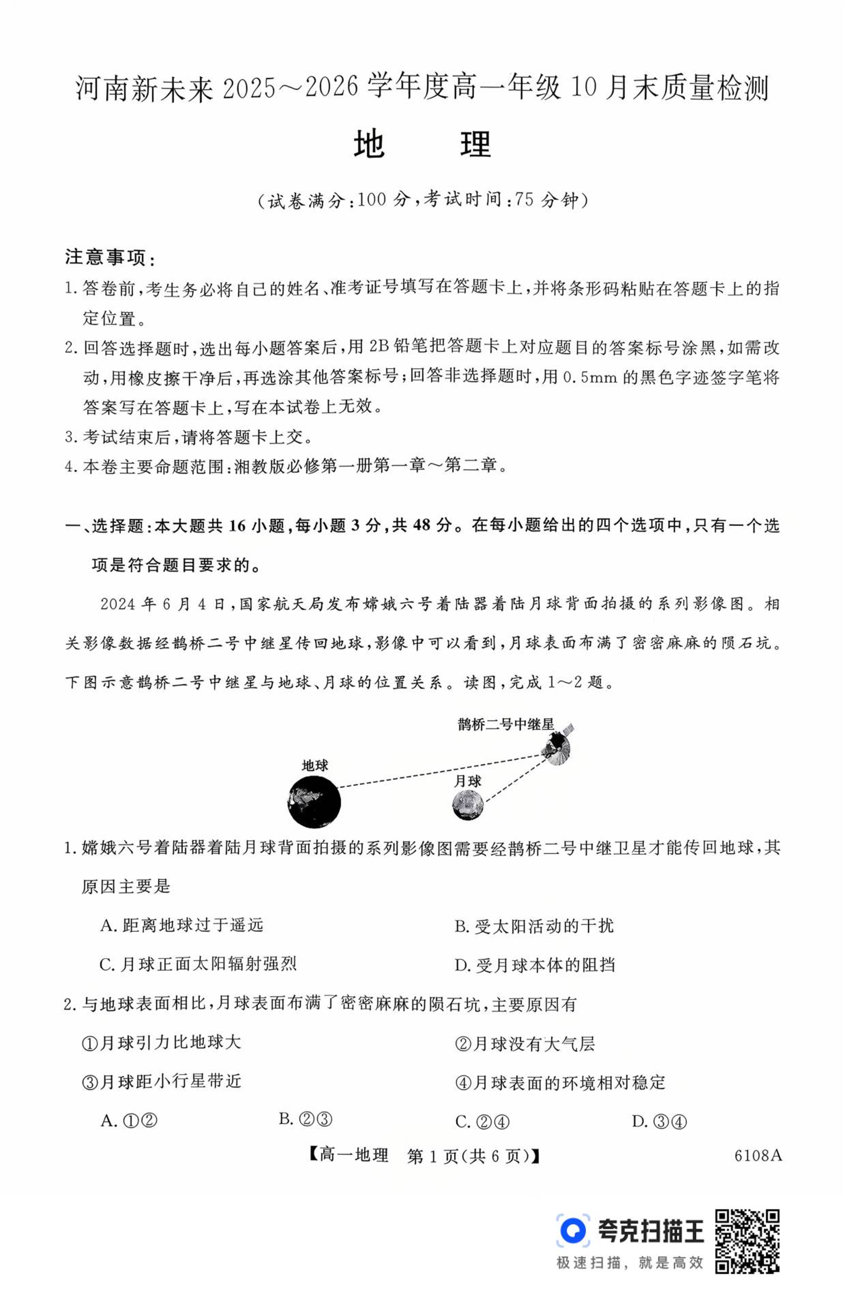 河南省新未来大联考2025-2026学年高一上学期10月末质量检测 地理.pdf