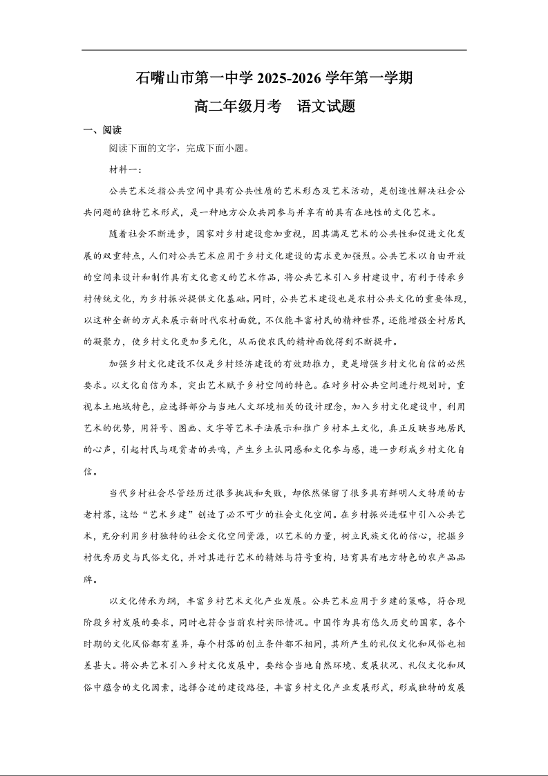 宁夏回族自治区石嘴山市第一中学2025-2026学年高二上学期10月月考 语文.docx