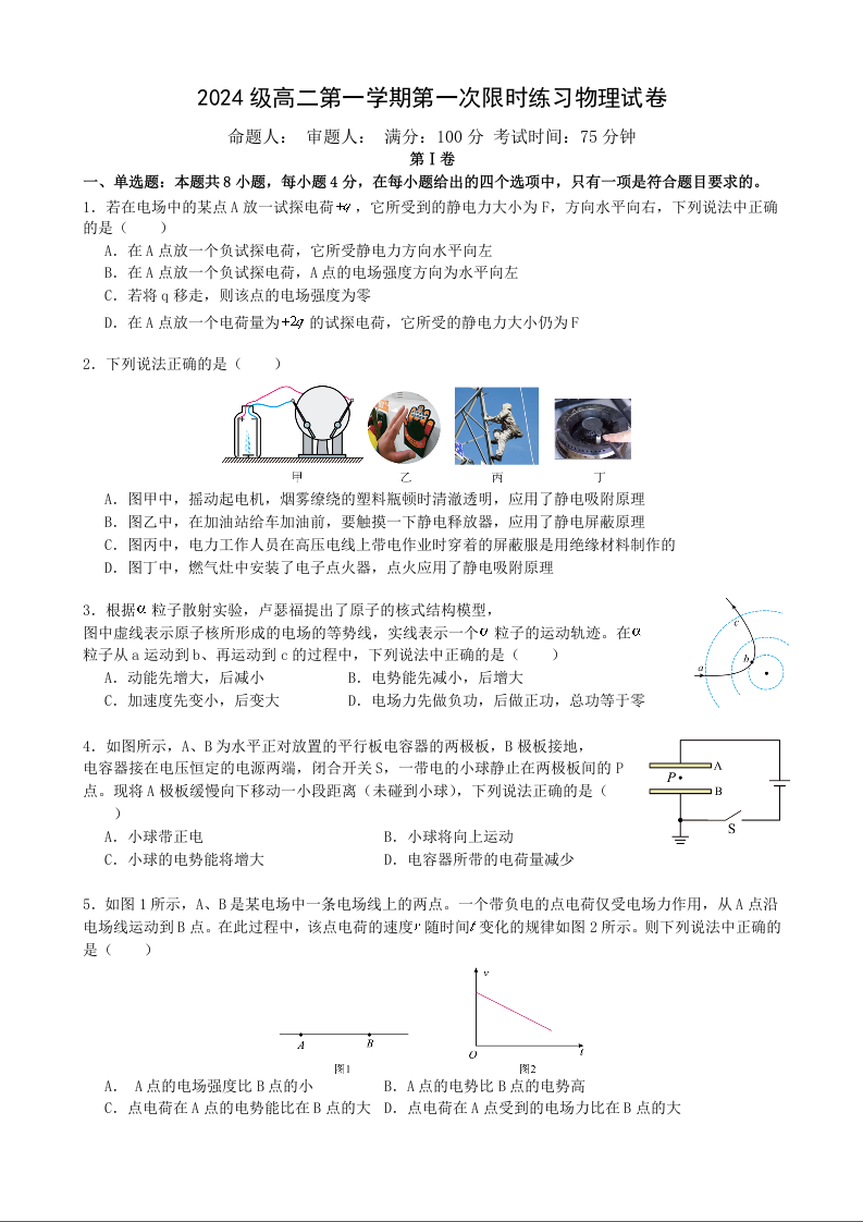 安徽省合肥市第七中学2025-2026学年高二上学期第一次限时练习 物理.docx