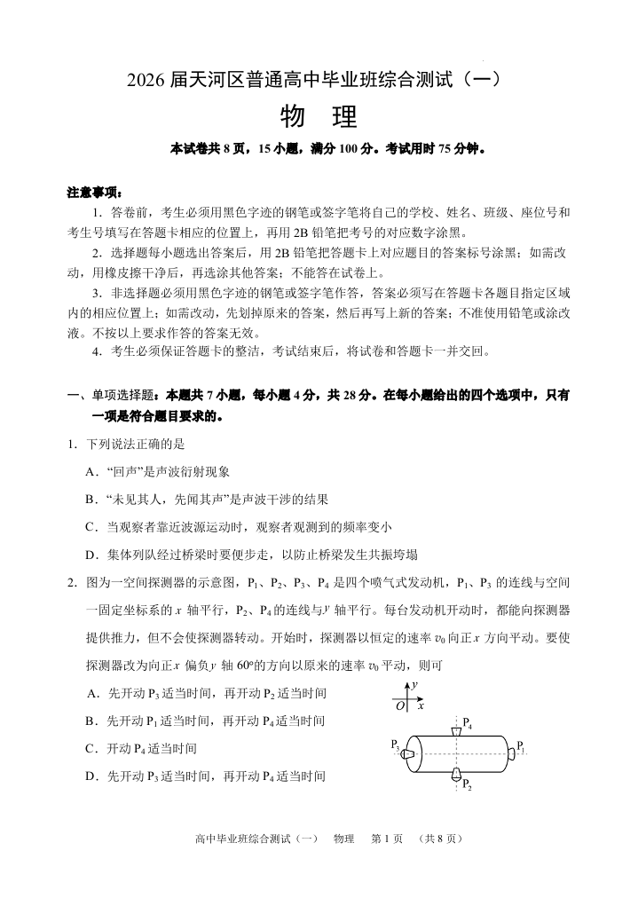广东省天河区2026届普通高中毕业班综合测试(一)物理.pdf