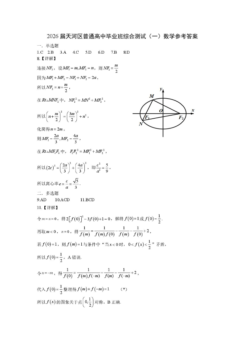 广东省天河区2026届普通高中毕业班综合测试(一)数学答案.pdf