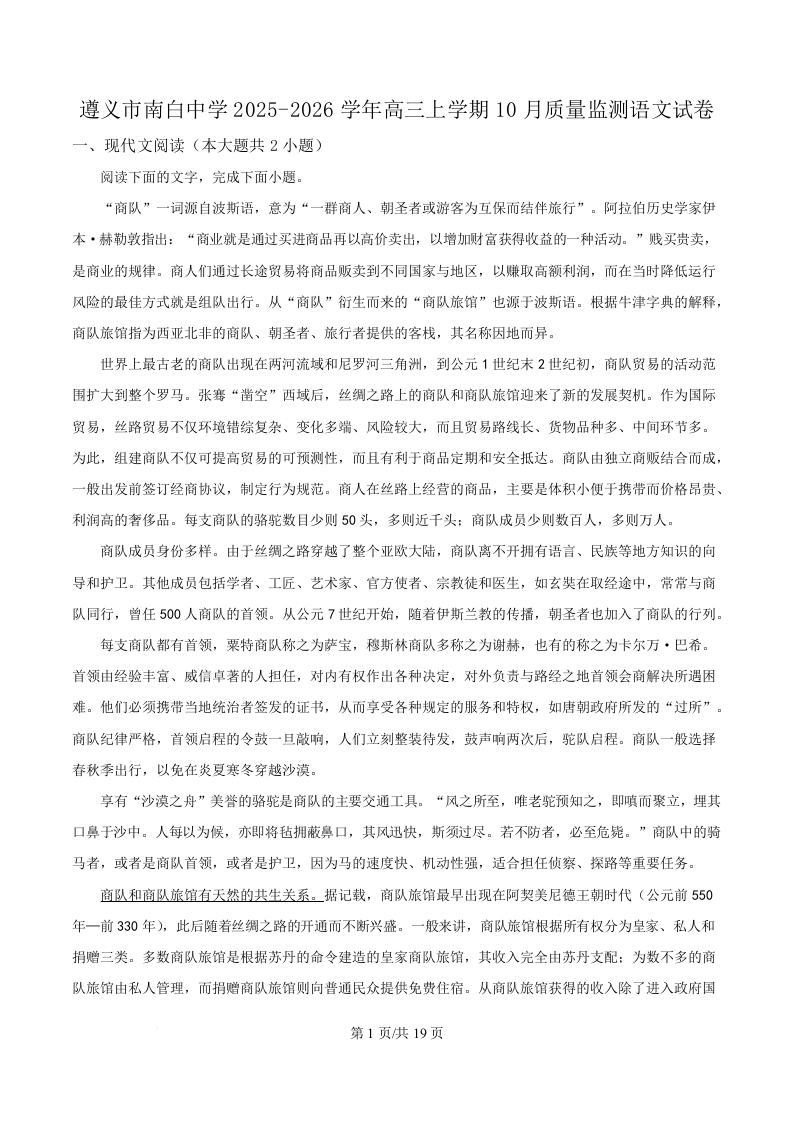 贵州省遵义市南白中学2026届高三上学期10月月考 语文答案.docx