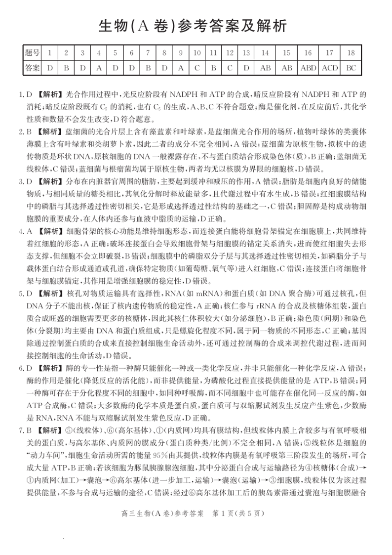河北省2026届高三年级一轮复习阶段性质量检测 生物答案.pdf