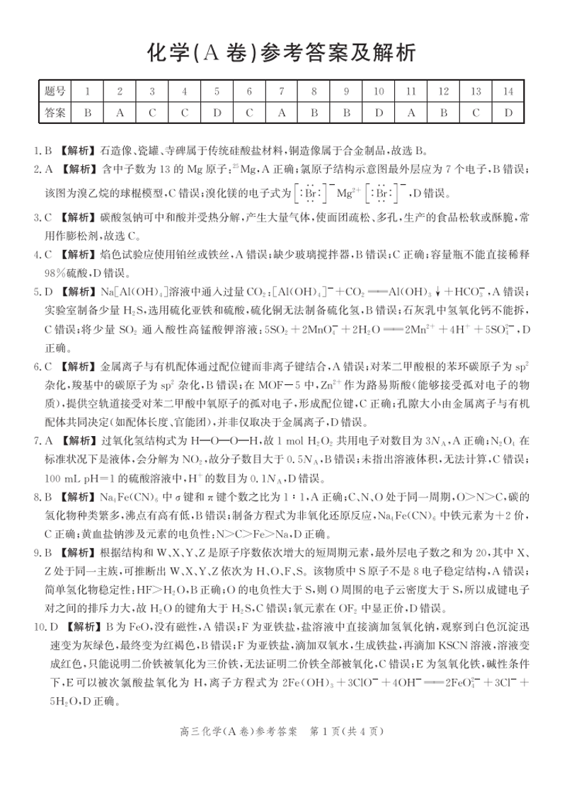河北省2026届高三年级一轮复习阶段性质量检测 化学答案.pdf