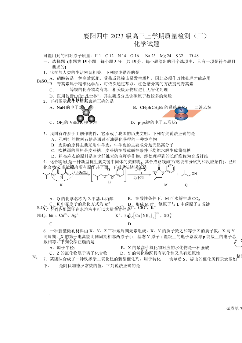 湖北省襄阳市第四中学2026届高三上学期10月月考 化学试题(含答案).docx