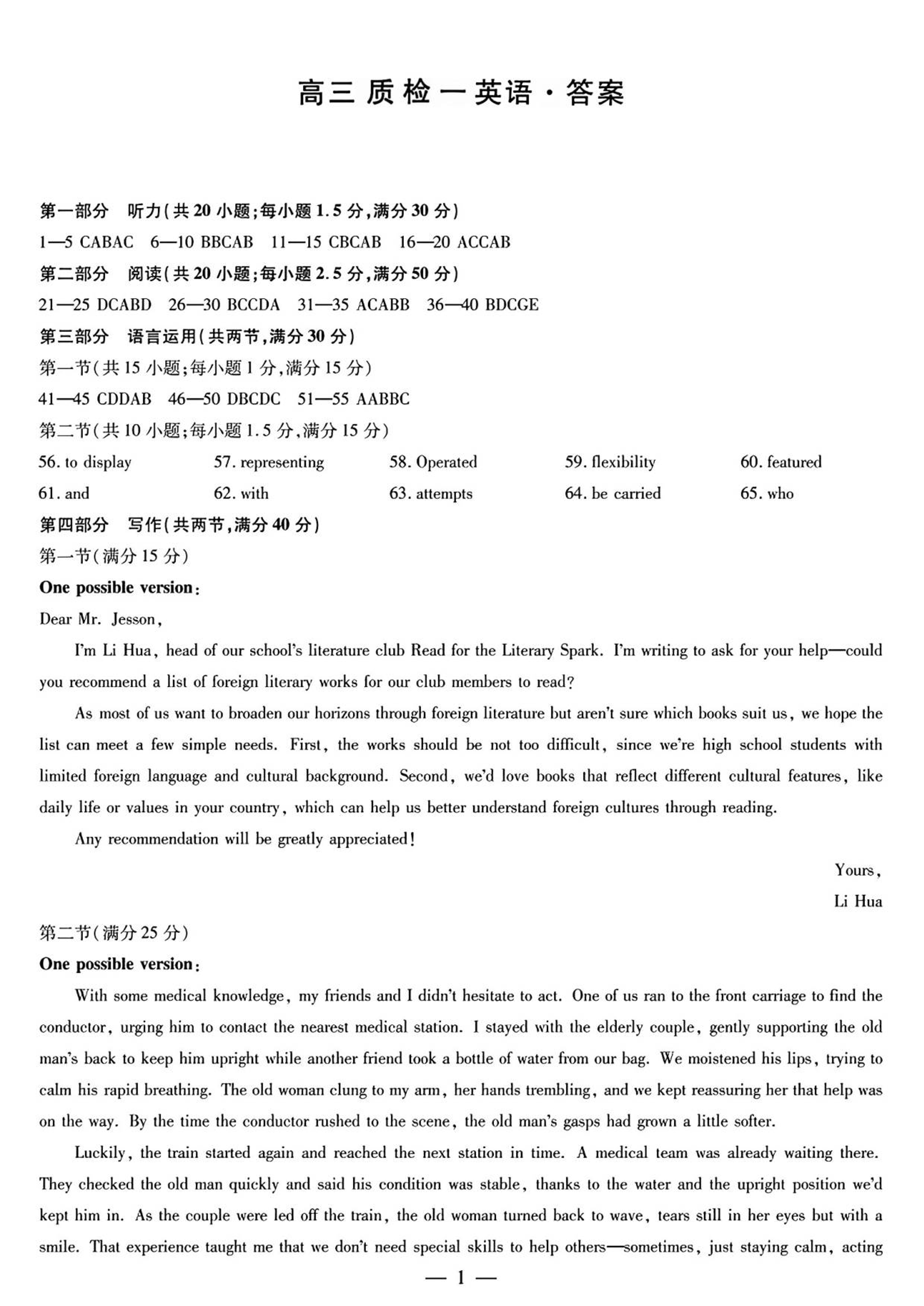 湖南省2025-2026学年(上)湘一名校联盟高三质检(一)英语答案.pdf