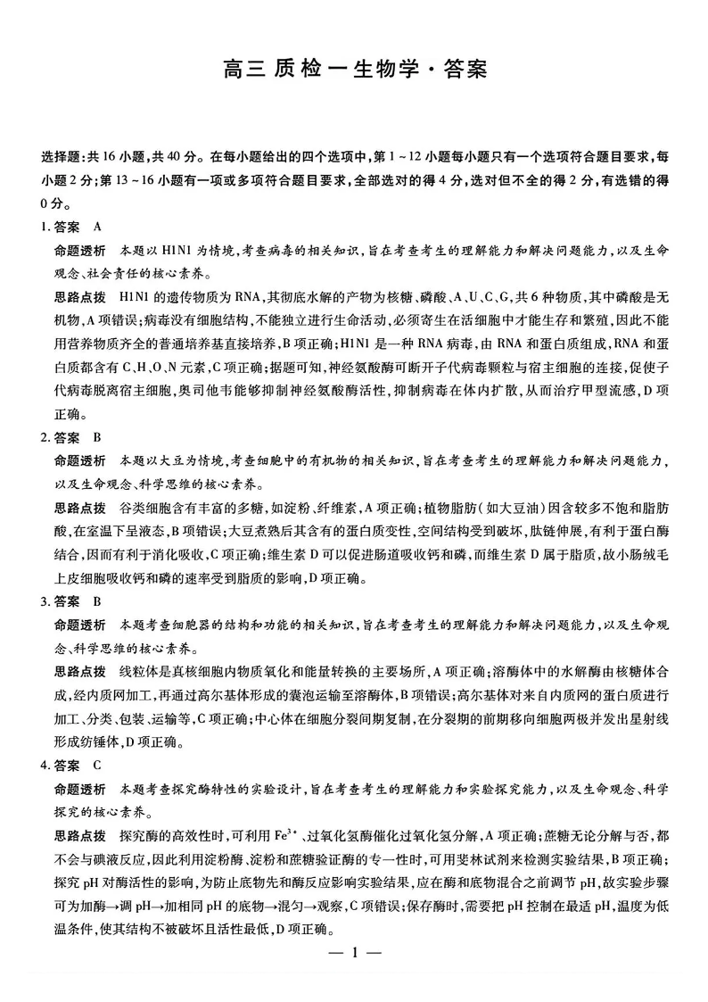 湖南省2025-2026学年(上)湘一名校联盟高三质检(一)生物答案.pdf