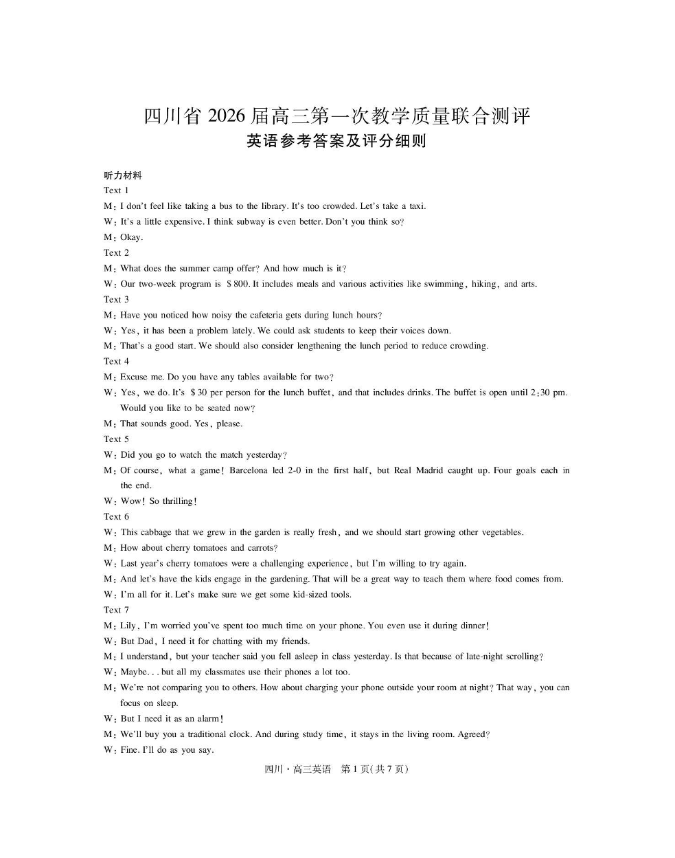 大数据智学领航联盟2026届高三第一次教学质量联合测评 英语答案.pdf