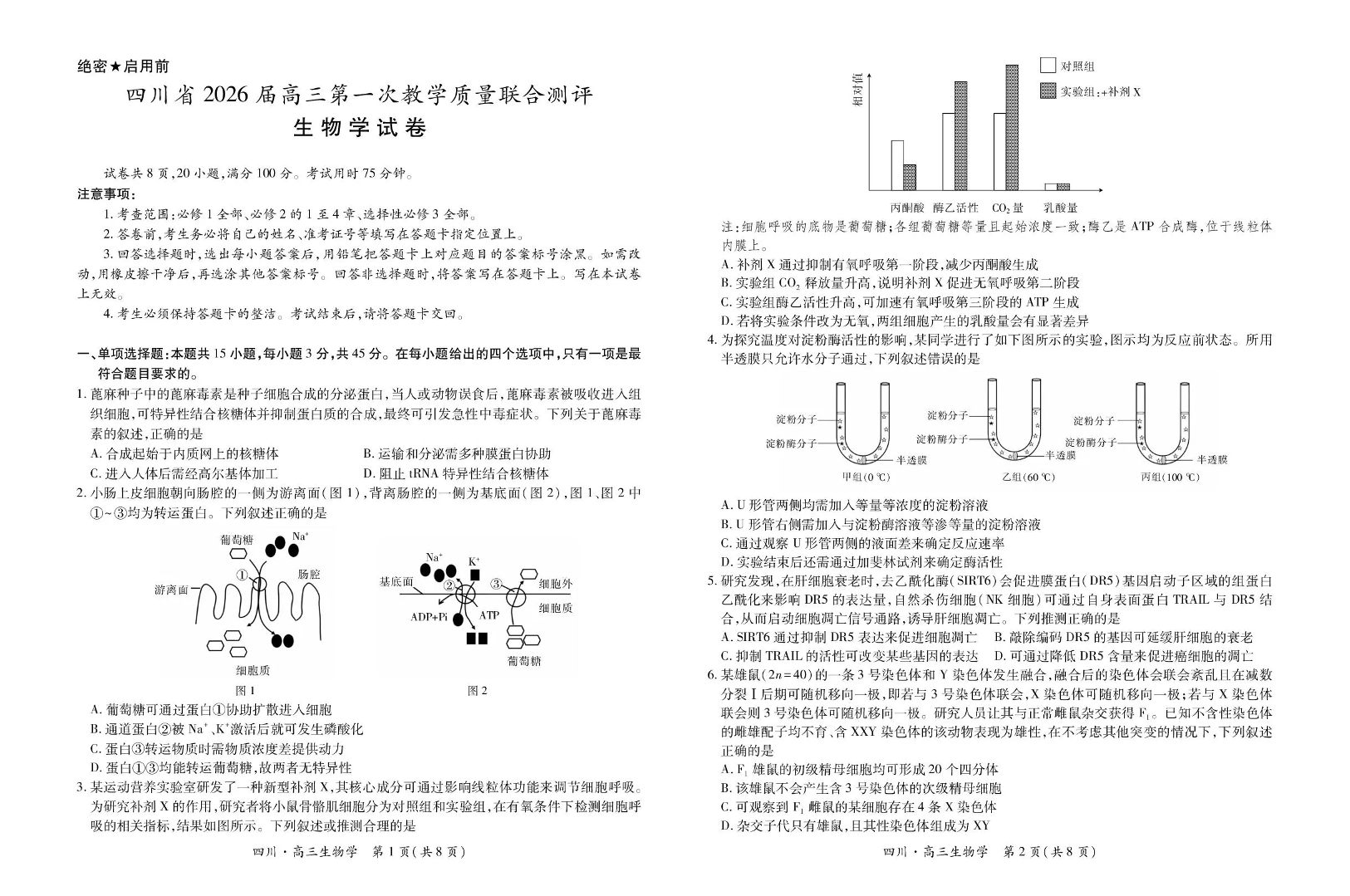 大数据智学领航联盟2026届高三第一次教学质量联合测评 生物.pdf