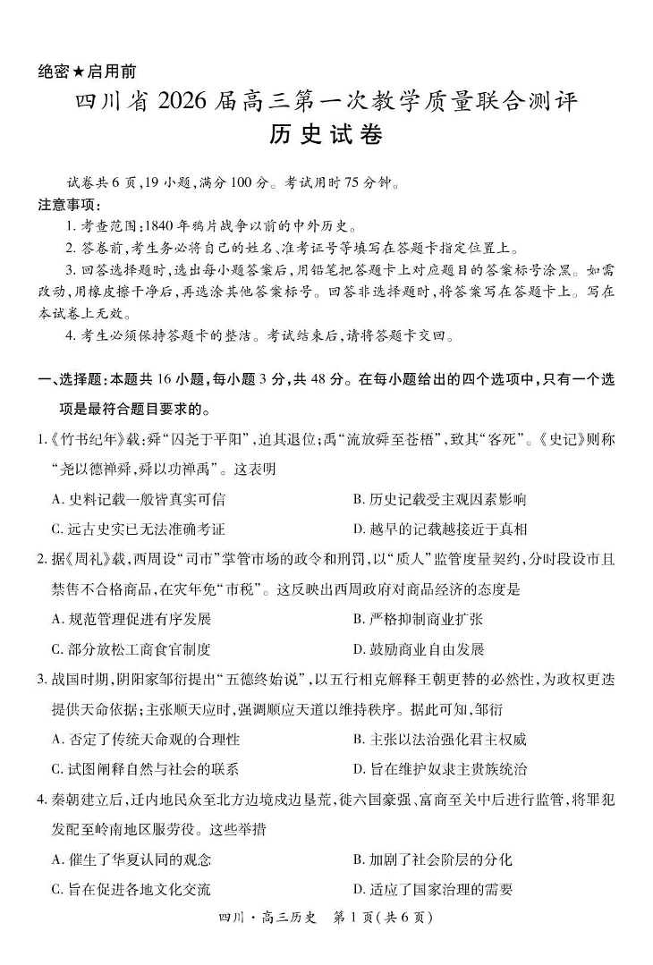 大数据智学领航联盟2026届高三第一次教学质量联合测评 历史.pdf