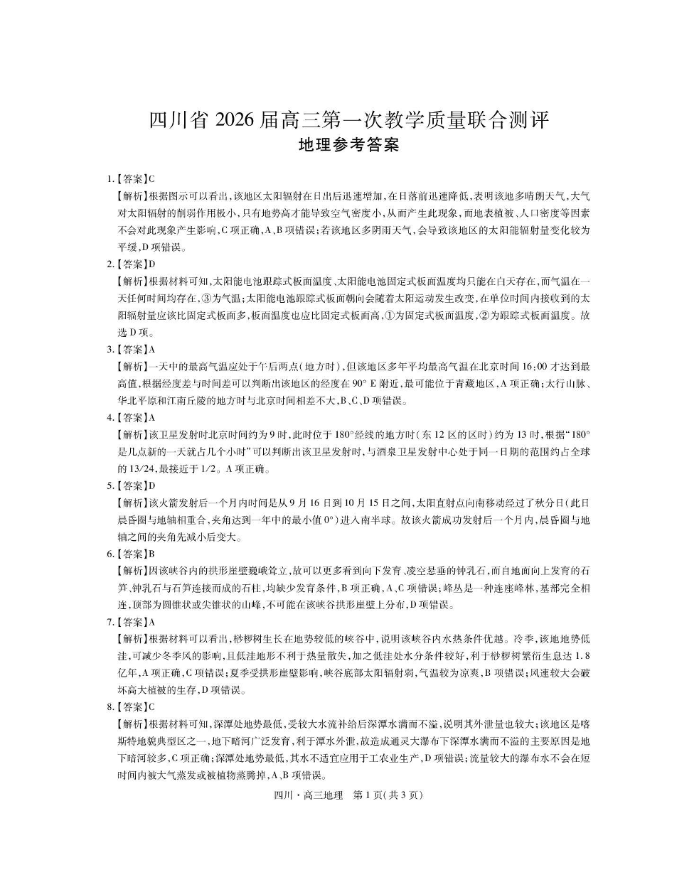 大数据智学领航联盟2026届高三第一次教学质量联合测评 地理答案.pdf