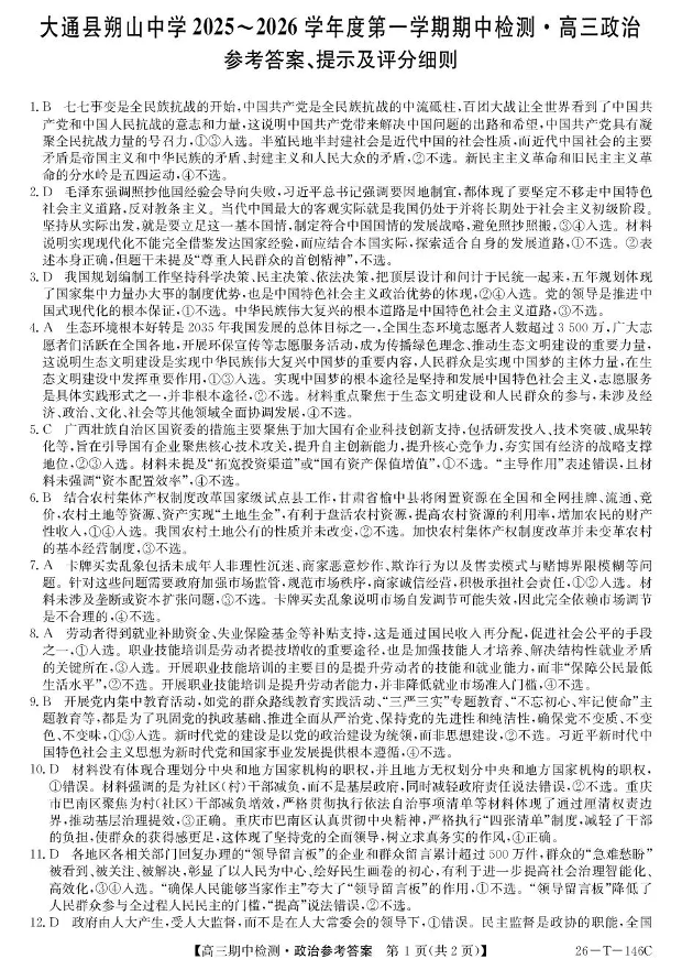大通县朔山中学2025~2026学年度第一学期期中检测 政治答案.pdf
