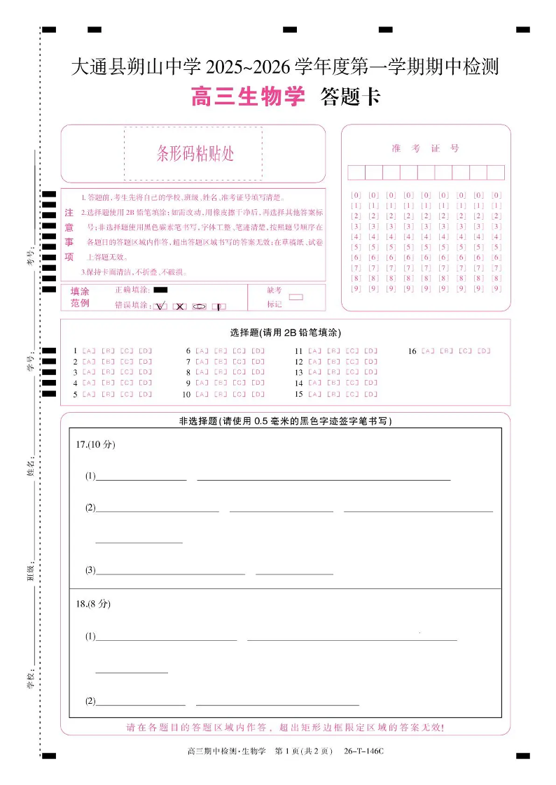 大通县朔山中学2025~2026学年度第一学期期中检测 生物答题卡.pdf
