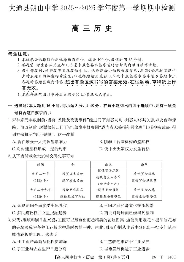 大通县朔山中学2025~2026学年度第一学期期中检测 历史.pdf
