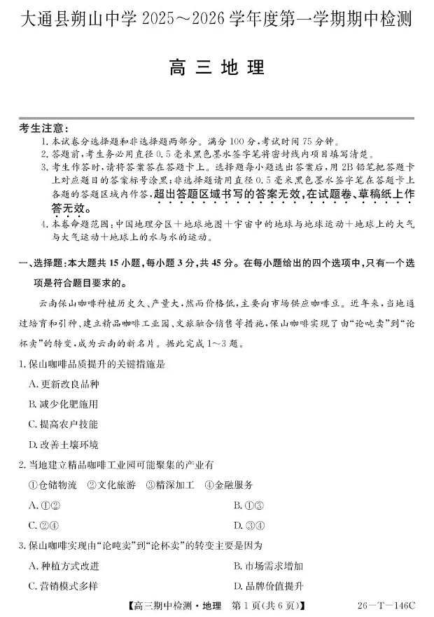 大通县朔山中学2025~2026学年度第一学期期中检测 地理.pdf