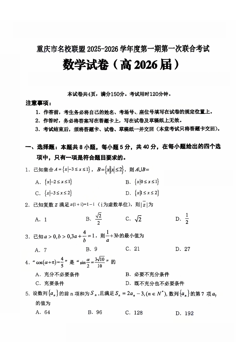重庆市名校联盟2025-2026学年度第一期第一次联合考试 数学.pdf