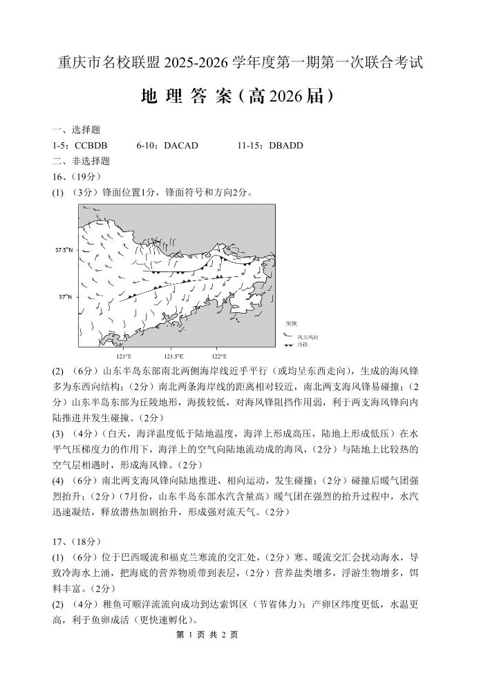 重庆市名校联盟2025-2026学年度第一期第一次联合考试 地理答案.pdf