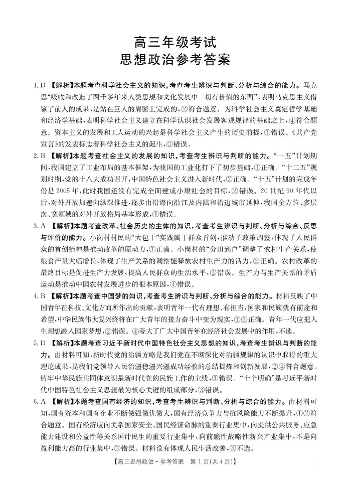陕西省2025届高三上学期10月联考 政治答案.pdf