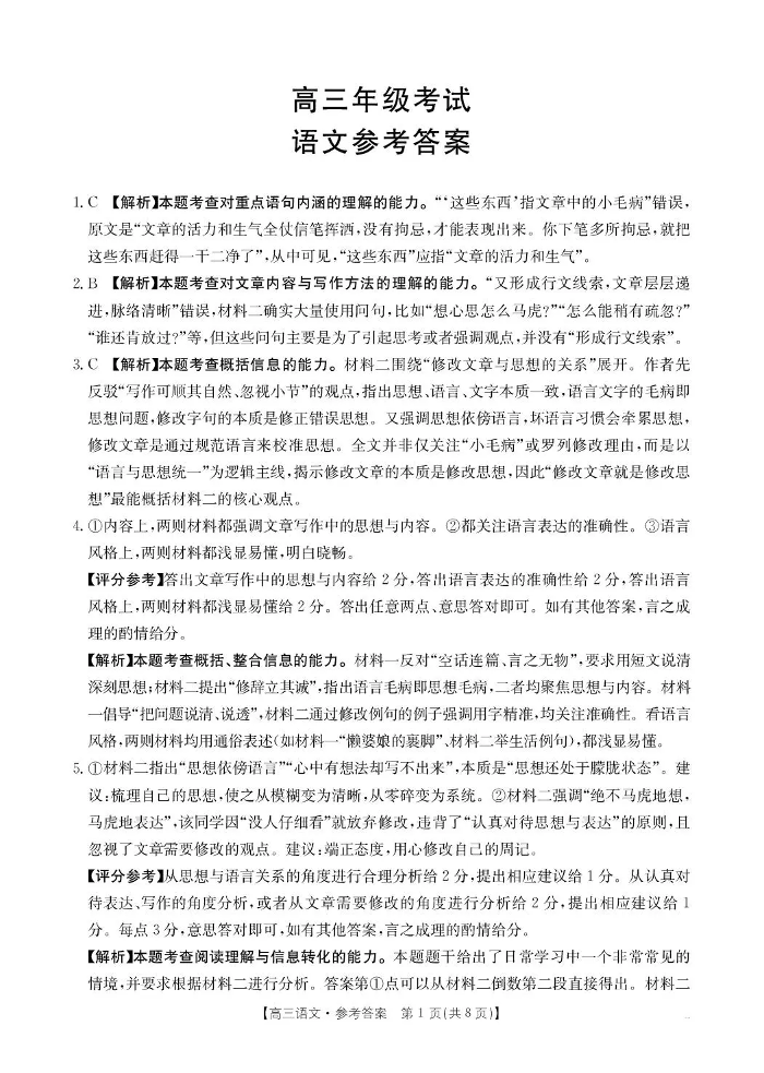 陕西省2025届高三上学期10月联考 语文答案.pdf